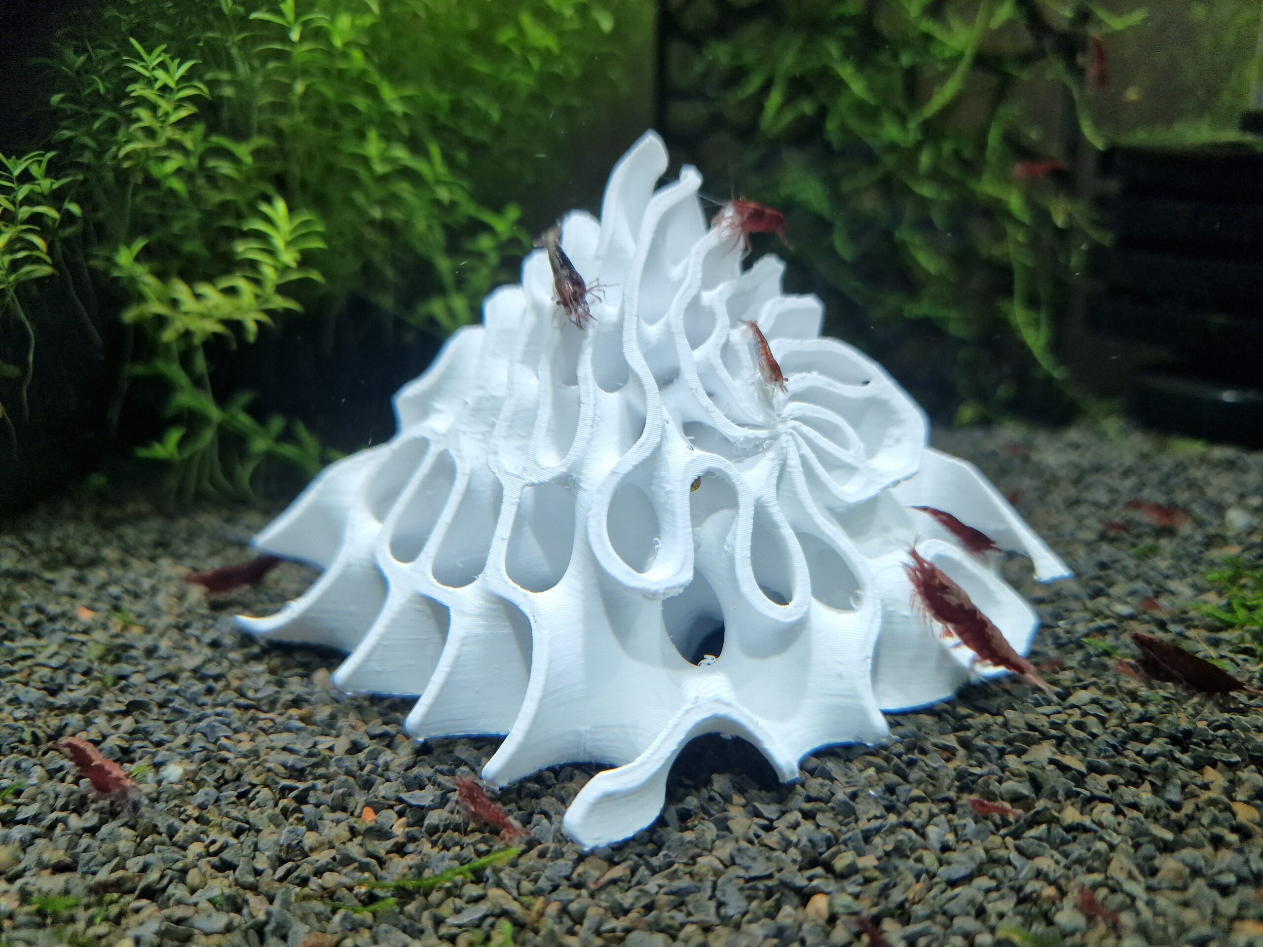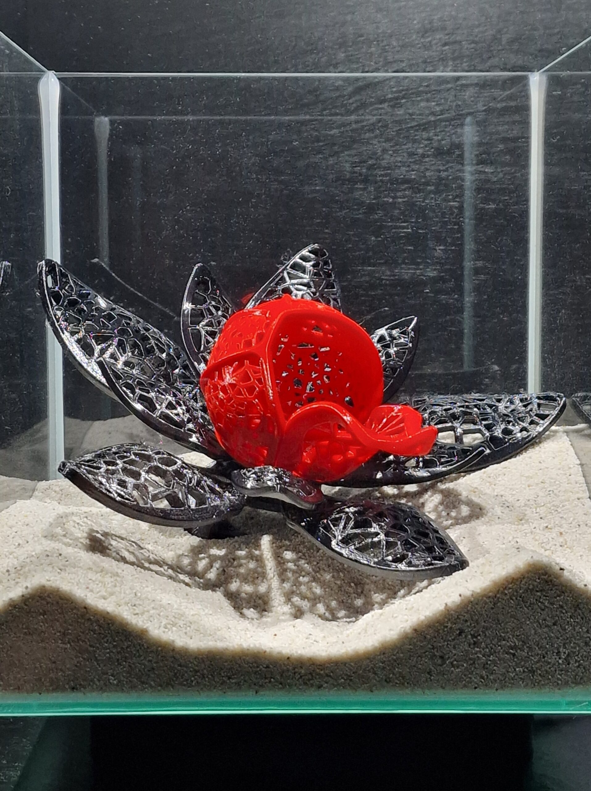 Custom 3D print - betta cave inspired by flower design. This is a eye catching, appealing addon to your fish tank.